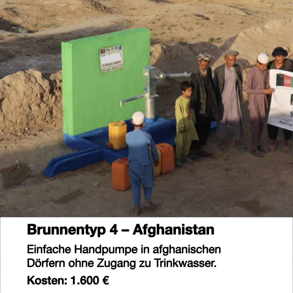 In abgelegenen Dörfern Afghanistans fehlt es oft an jeder Art von Wasserversorgung. Dieser Brunnentyp schafft mit einer einfachen Handpumpe Zugang zu sauberem Trinkwasser. Die Lösung ist kostengünstig, wartungsarm und besonders für kleine Dorfgemeinschaften geeignet.