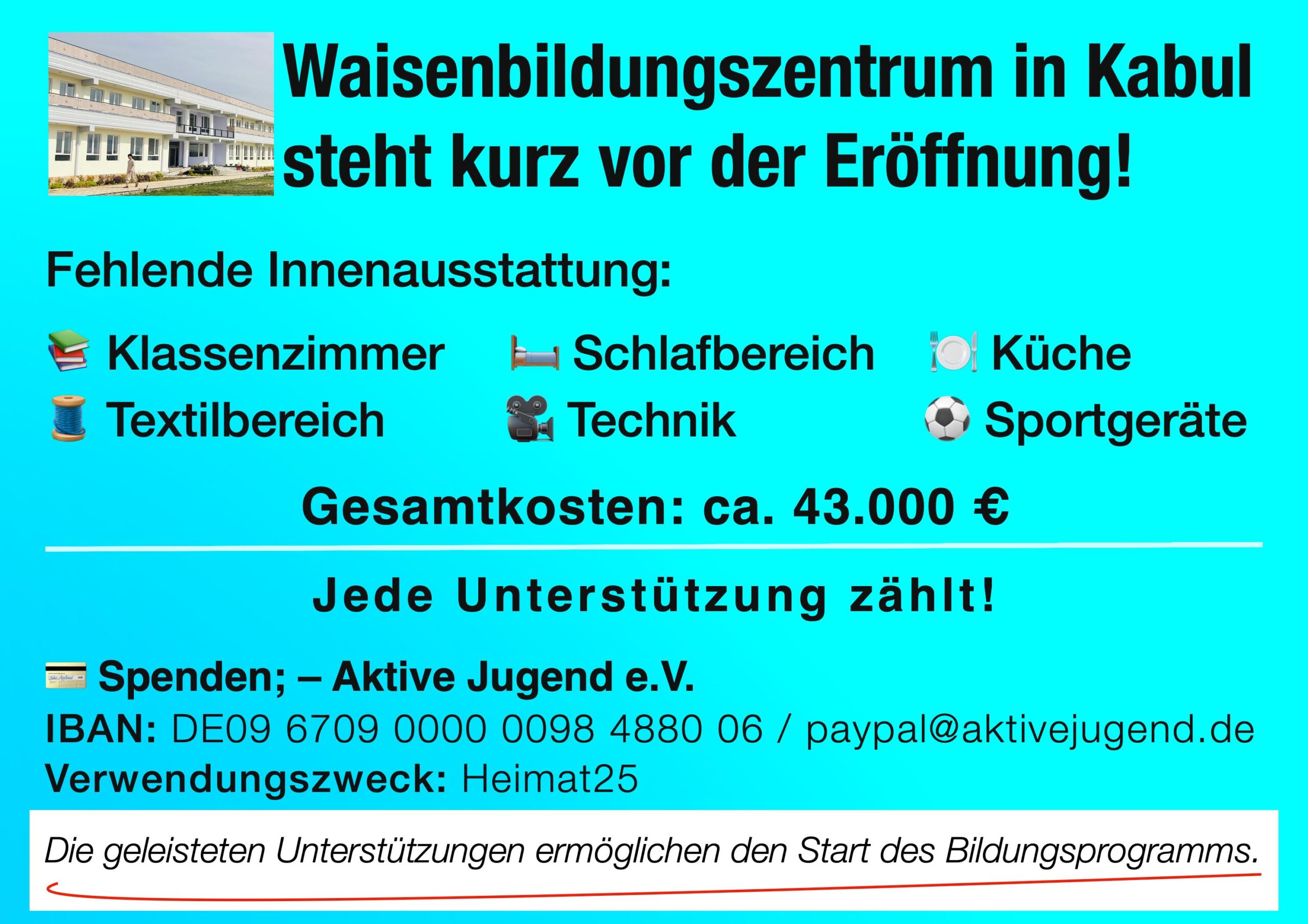 Unser Kinderbildungszentrum in Kabul steht kurz vor der Eröffnung! 🎒🏫